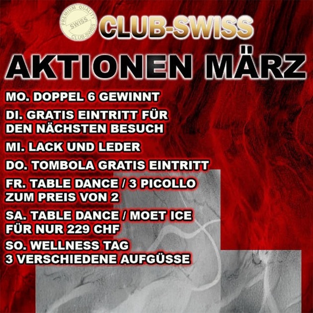 Der Club Swiss hat im März wieder einige tolle Aktionen und Mottos für die Gäste parat. Im Einzelnen sind das: