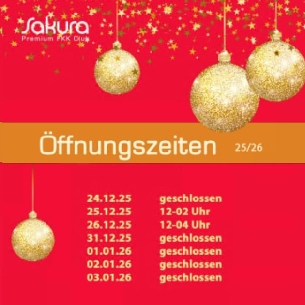 Der Premium FKK Club Sakura hat über die Feiertage wie folgt geöffnet:
