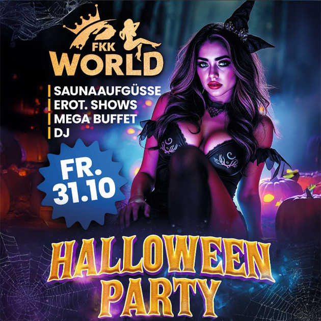 Eventankündigung: Dem Weltlichen haben sie den Rücken gekehrt, dem "Worldlichen" können sie einfach nicht entsagen: Die Geister sind los in der FKK World! Schaurige Outfits zieren schöne Gestalten im bunt dekorierten Club - so ist es Brauch und so soll es auch zur Halloween Party am Freitag, den 31. Oktober werden, nur eben World-like, wie immer: immer etwas wilder als anderswo und einfach ungeheuer sexy!