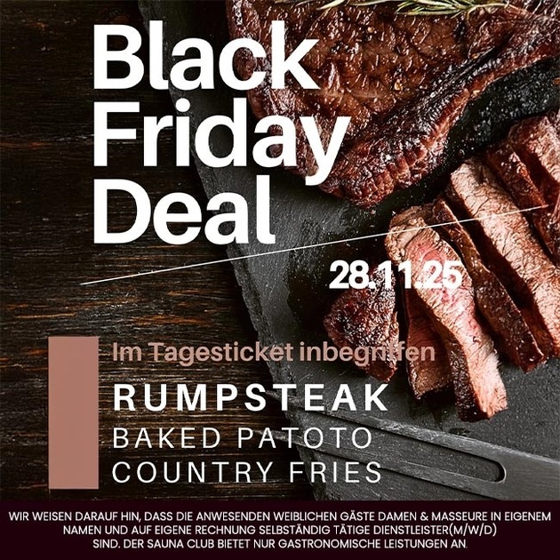 Am 28.11.2025 erwartet Gäste des Palmas ein exklusives Black-Friday-Angebot: Im Tagesticket ist ein saftiges Rumpsteak enthalten, begleitet von knusprig, gebackenen Country Fries. Dieses besondere Highlight verspricht ein genussvolles Erlebnis, das man sich nicht entgehen lassen sollte.