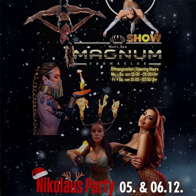 Wer eine Mischung aus sinnlicher Unterhaltung, festlicher Stimmung und beeindruckender Artistik sucht, wird die Nikolaus-Party im Magnum Sauna Club nicht verpassen wollen.